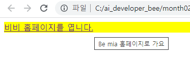 <div title="Be mia 홈페이지로 가요" style="background-color: yellow;">
