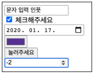 사용 가능한 type은 20여 가지이며, 기본 타입의 값은 text (문자를 입력하는 네모 박스) 입니다.