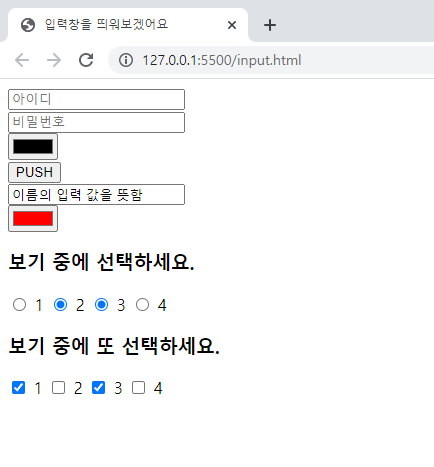input은 속성 값에 변화를 주어서 각각의 다른 형태와 속성으로 바꿀 수 있습니다.