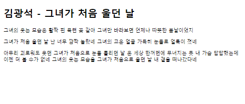 <h1 id="heading"> 김광석 - 그녀가 처음 울던 날 </h1>