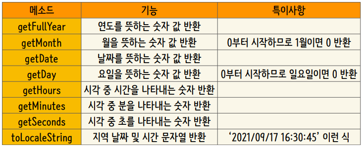 이번에는 Date ()함수에 들어있는 각 메소드들을 사용해보도록 할게요.