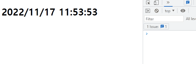 그리고 맨 위에 만들었던 h1 변수에 년월일시분초의 text Content를 저장하는 코드를 생성해줍니다.