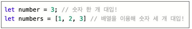 이전까지 변수(또는 상수)에는 데이터를 하나씩만 대입할 수 있었지만,
