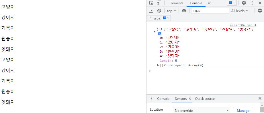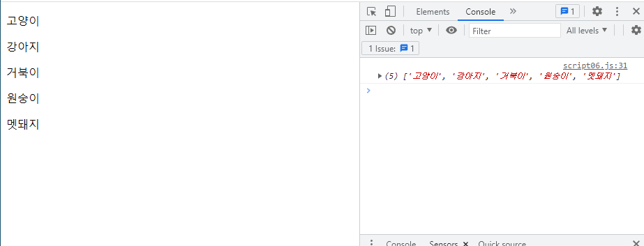 이렇게 콘솔 화면에 출력되는 배열의 내용을 화면에 표시하는 방법들을 하나씩 살펴볼게요.