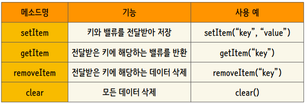 로컬스토리지로부터 데이터를 읽거나 쓸 때에는 메소드를 이용해서 접근합니다.