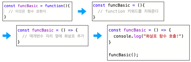 다음은 화살표 함수를 만드는 과정입니다.