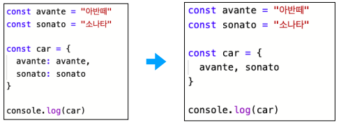 객체를 만들 때 key와 value를 변수의 내용이 녹여서 넣습니다.