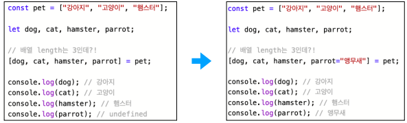 분해하려는 배열의 갯수가 정확하게 파악되지 않았을 경우 값에 undefined가 출력되는 경우가 있습니다.