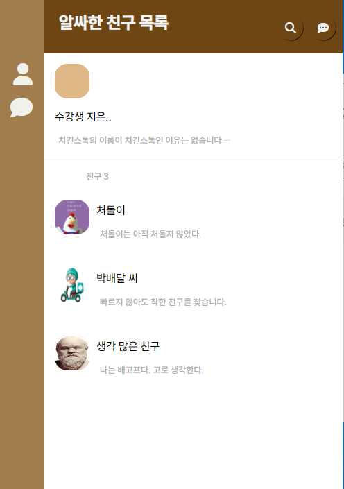 친구목록과 채팅방의 목록 중 비슷한 부분 (네비게이션 바, 헤더, 유저 리스트(친구, 채팅목록)) 에 대해서는