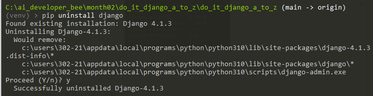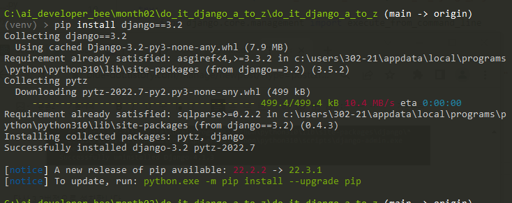 터미널에서 pip list 를 쳐보면 장고 버전이 4.0 일 경우가 9999...%...