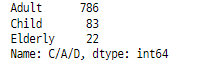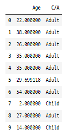 titanic_df['C/A/D'] = titanic_df['Age'].apply(lambda x : 'Child' if x <= 15
