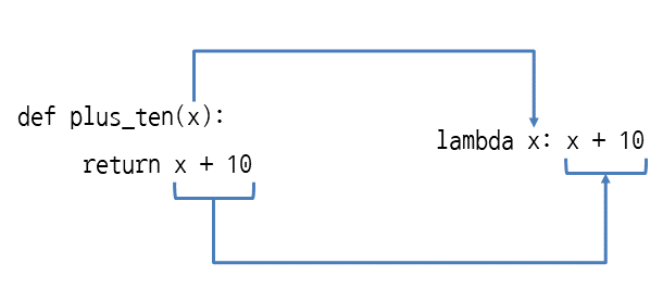 함수명 = lambda 매개변수 1, 2, ... : 매개변수_표현식