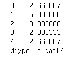 넘파이의 메소드 중 mean 평균을 구하는 기능을 axis=1 전체 행에 apply 로 데이터 프레임에 적용합니다.