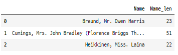 titanic_df[['Name', 'Name_len']] .head(3)
