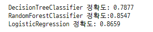 # 결정트리, Random Forest, 로지스틱 회귀를 위한 사이킷런 Classifier 클래스 생성