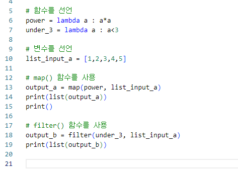 다음으로 filter() 와 map() 함수를 알아봅니다.