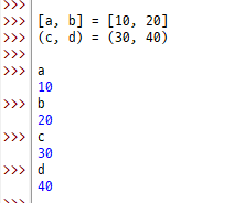 리스트와 튜플은 할당 구문에 있어서 한꺼번에 변수를 여러개를 만들 수 있습니다.