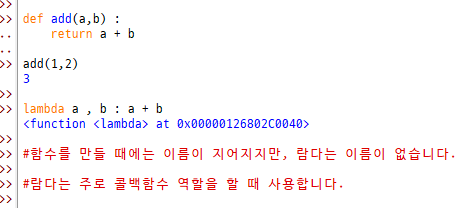 조금 더 간단하게 함수를 선언하기 위해 람다 함수를 만들었습니다.