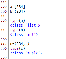리스트를 하나만 적을 때에는 값을 int, 즉 숫자를 괄호로 감싼 것으로 이해합니다.