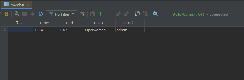 intellij 에서 확인해보자, column 테이블에 데이터가 들어왔나..