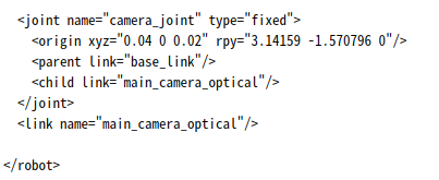 <origin xyz="0.0 0 0.07" rpy="0.0 0 3.14159"/> 의 부분을 수정해주면 xyz, rpy 축에 따라 카메라의 각도가 변경됩니다.