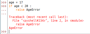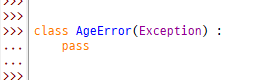 Exception 에서 상속을 받아서 AgeError를 만듦.