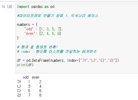 #데이터프레임 만들기 방법 1. 딕셔너리 베이스