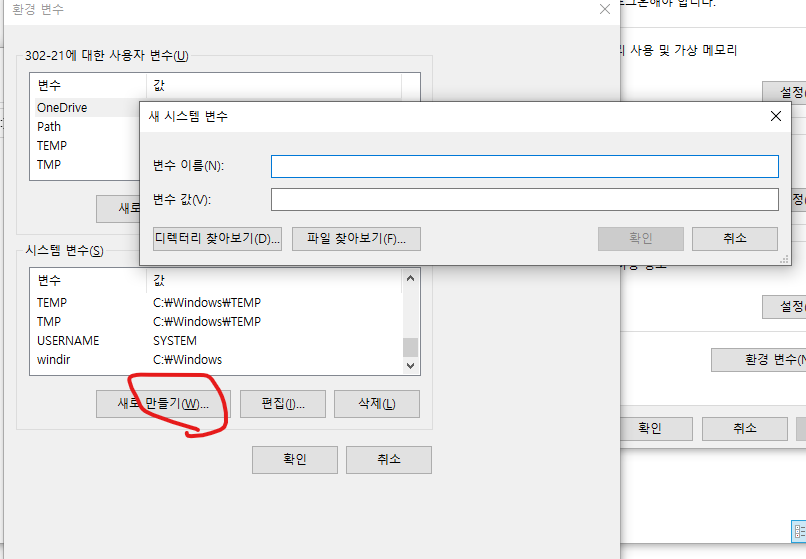 디렉토리의 주소를 확인했다면 환경변수에서 새로만들기를 누르시고