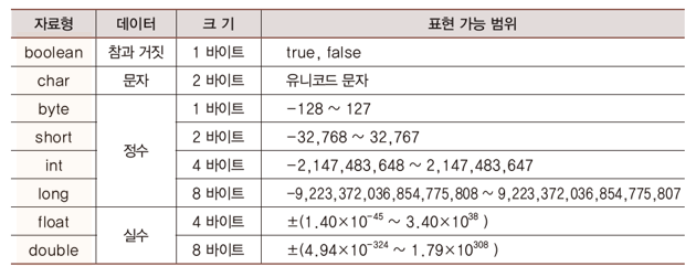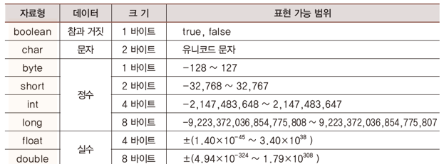 변수에 저장할 데이터가 어떤 유형인지를 알려주는 자료형 범위 입니다.