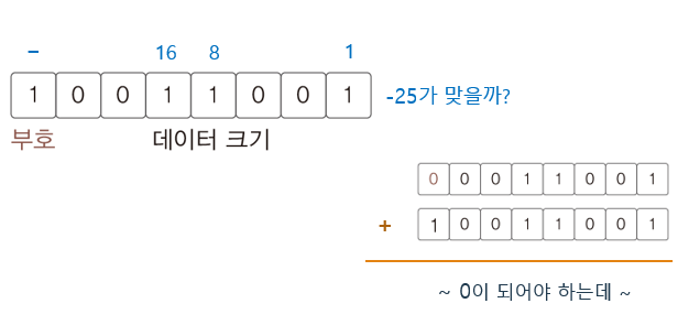 양의 25를 기준으로 더했을 때 0니 나오는 수가 음의 25가 되는 것입니다.