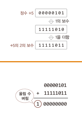 양의 정수의 이진수 표현에 2의 보수를 취한 결과를 음의 정수로 표현합니다.