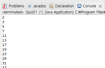 * 이 메소드의 호출결과를 기반으로 1 이상 100 이하의 소수를 전부 출력하는