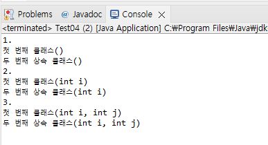 System.out.println("두 번째 상속 클래스(int i, int j)");