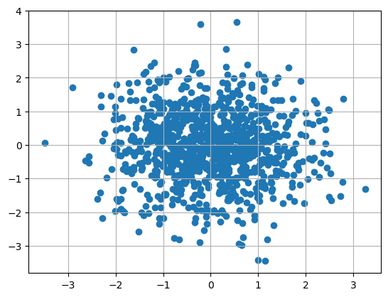y = np.random.randn(n) # 정규 분포를 따른 난수의 분포