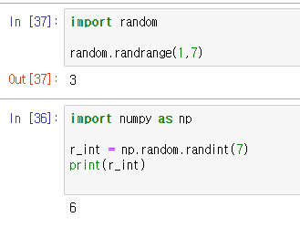 r_int = np.random.randint(7) // 0에서 7까지의 랜덤한 수