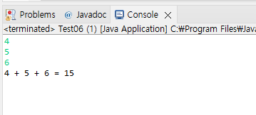 System.out.printf("%d + %d + %d = %d \n", num1, num2, num3, sum);